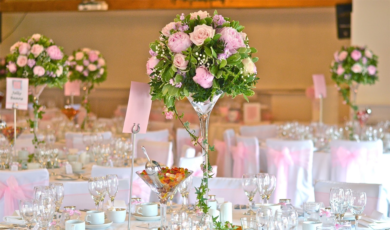 Kompletno aranžiranje venčanja svećnjacima, akvarijumima, martini čašama i td…